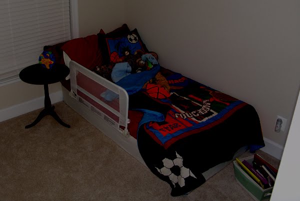 That bed is so cute. He looks so little in such a big bed. Maddie's toddler bed makes her look huge. haha He is growing up so fast!